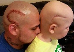На долю дошкольника из США выпали нелегкие испытания: врачи обнаружили у него злокачественную опухоль головного мозга. После операции на голове мальчика остался большой шрам – и тогда его отец сделал себе тату, точно повторяющее очертания рубца.